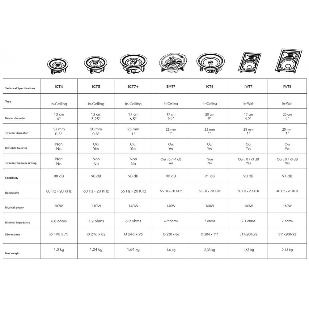 IWT7 er den minste av de to rektangulære høyttalerne i Secret-serien til franske Triangle. Den er bestykket med en 16 cm bass/mellomtone og en justerbar 25 mm soft dome-diskant. Høyttaleren leverer klar og fin hifi-lyd og krever kun 8,7 cm dybde der den skal installeres. Under magnetgrillen finner du praktiske brytere for å justere diskant og bass.